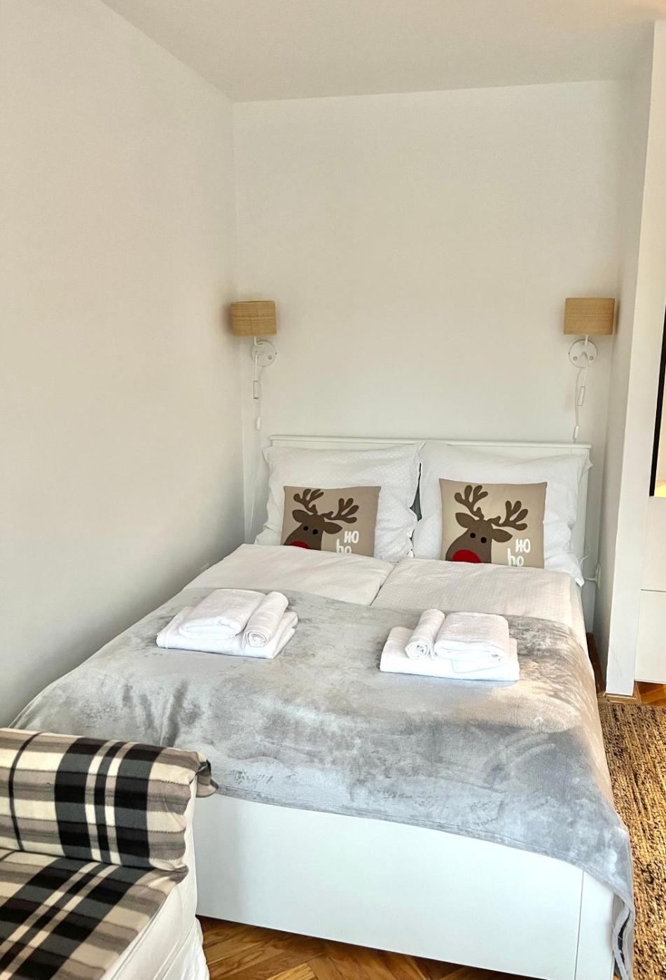 Rodzinny apartament typu Studio. Guests can make meals in the kitchenette that is equipped with a stovetop, a refrigerator, kitchenware and a tea and coffee maker. The studio provides a washing machine, a private entrance, as well as a private bathroom featuring a bath and a hairdryer. The unit offers 1 bed. Studio - 2 osobowy. Powierzchnia pokoju ok.: 24 mkw.