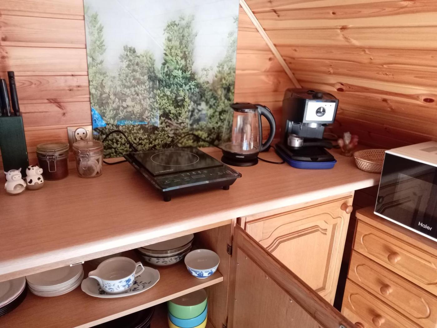 Domek z 2 sypialniami. Featuring a private entrance, this chalet consists of 1 living room, 2 separate bedrooms and 1 bathroom with a walk-in shower and a hairdryer. The well-fitted kitchenette features a stovetop, a refrigerator, kitchenware and a microwave. The chalet provides a flat-screen TV, a tea and coffee maker, a dining area, a sofa as well as garden views. The unit offers 5 beds. Domek - 6 osobowy. Powierzchnia pokoju ok.: 50 mkw.