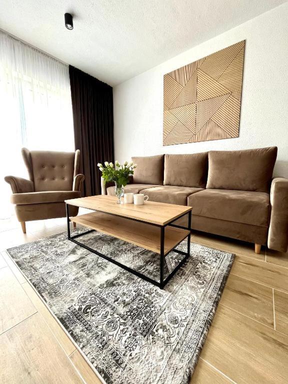 Apartament typu Deluxe. Featuring a private entrance, this apartment comprises 1 living room, 2 separate bedrooms and 1 bathroom with a shower and a hairdryer. Guests will find a stovetop, a refrigerator, kitchenware and a microwave in the well-fitted kitchen. The apartment also provides guests with a barbecue. Boasting a balcony with garden views, this apartment also provides a tea and coffee maker and a flat-screen TV. The unit offers 4 beds. Apartament - 5 osobowy. Powierzchnia pokoju ok.: 60 mkw. ;
